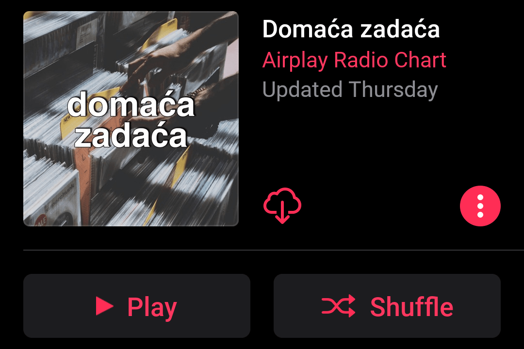Dok se na Deezeru playlista svakoga tjedna u potpunosti mijenja, na servisu Apple Music vam dajemo svojevrsni best of Domaće zadaće. Foto: Screenshot Apple Music